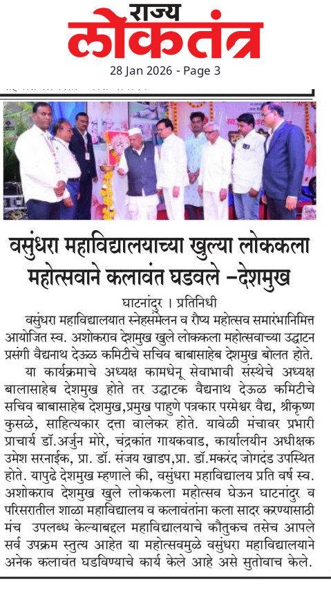 News 1 : Welcome to Vasundhara College of Arts, Science & Commerce. Ghatnandur     ||