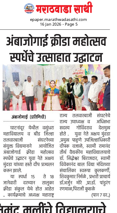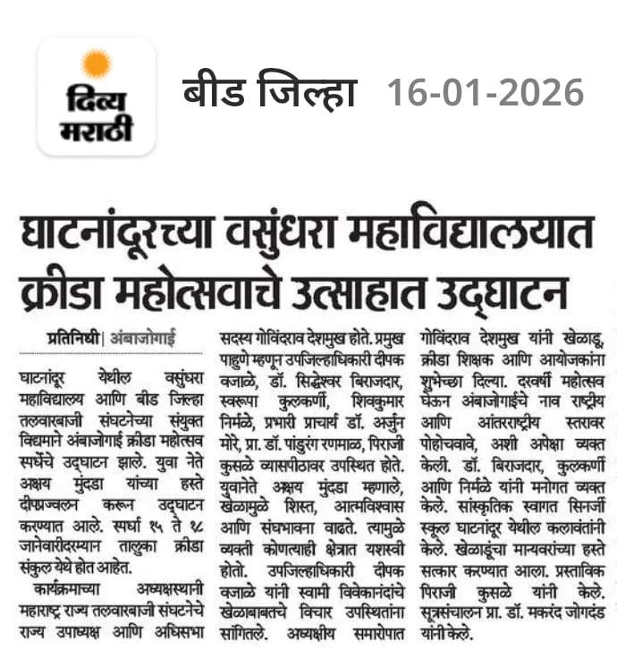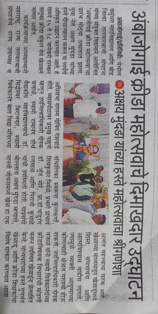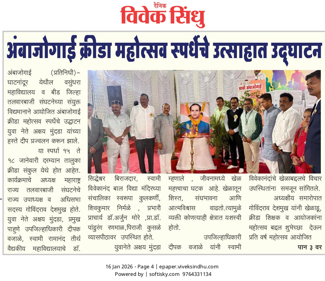 Ghatnandur, Tq. Ambajogai, Dist. Beed-431519 (M.S.) NAAC Accredited with 'B++' Grade [Permanently Affiliated To Dr. B.A.M.U. Aurangabad]