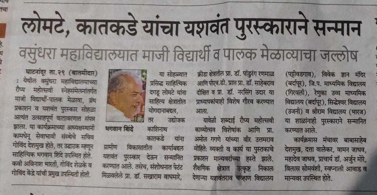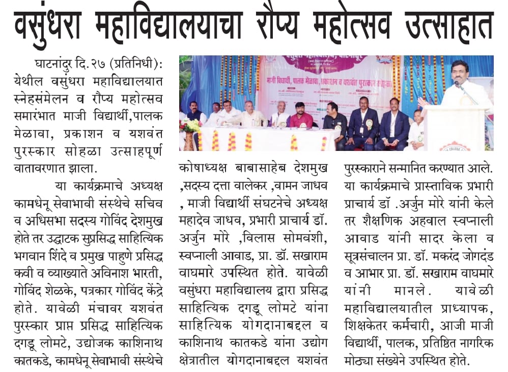 Ghatnandur, Tq. Ambajogai, Dist. Beed-431519 (M.S.) NAAC Accredited with 'B++' Grade [Permanently Affiliated To Dr. B.A.M.U. Aurangabad]
